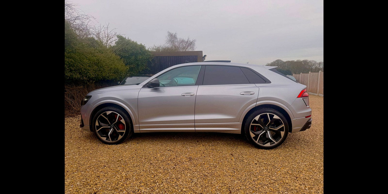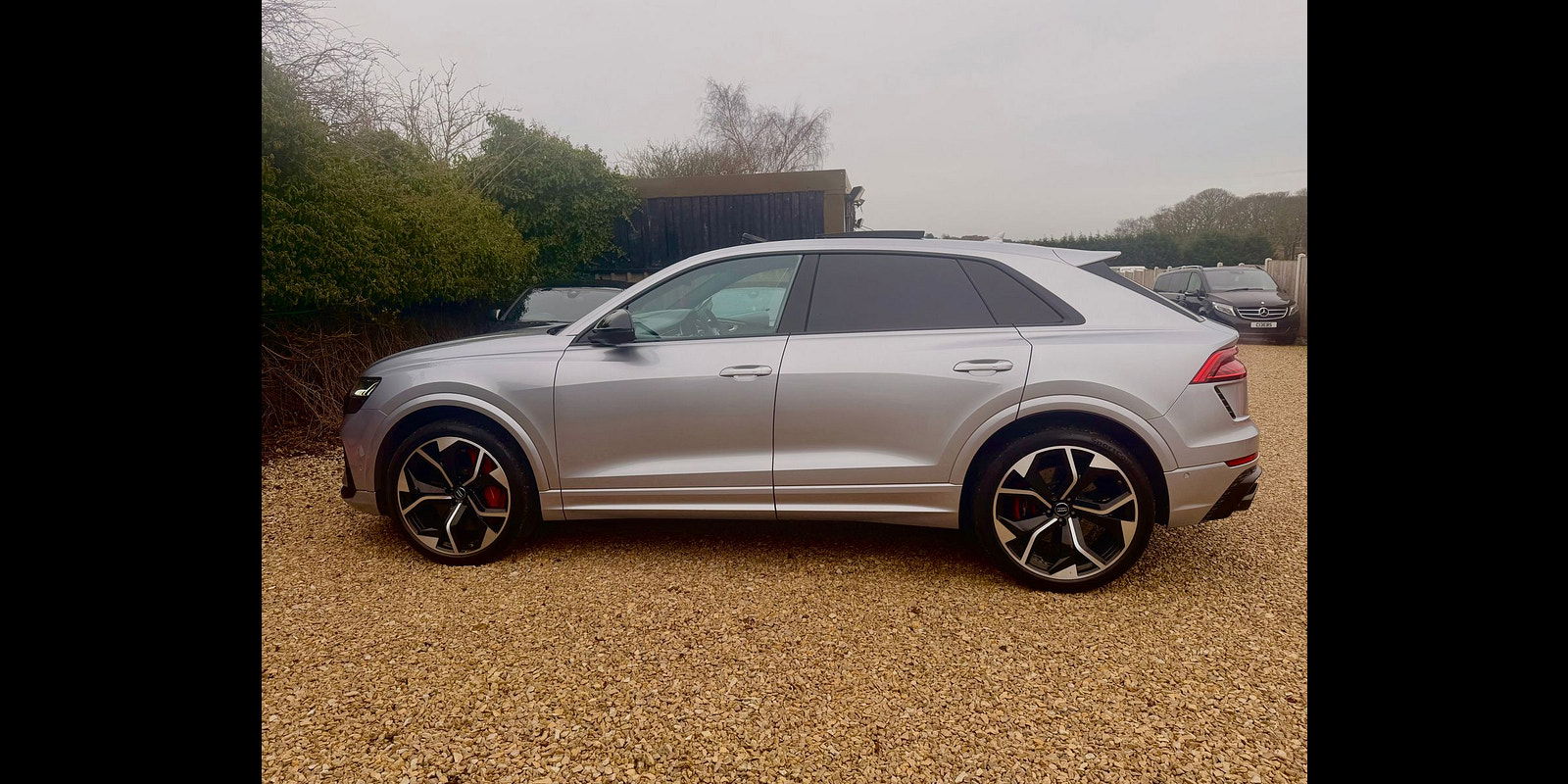 Introducing the Audi RS Q8 in stunning Silver, where elegance meets athleticism. This striking SUV boasts a bold silhouette, accentuated by the iconic Audi Singleframe grille and flared wheel arches that exude confidence. The dynamic LED headlights provide a distinctive lift to the front profile, while the pronounced quad exhaust tailpipes speak to its power. The 22-inch alloy wheels, combined with a lowered sports suspension, enhance both aesthetics and performance on the road. This vehicle is not just a mode of transport; it’s a statement.