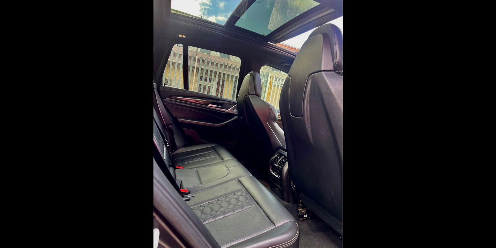 Unveiling the stunning Donington Grey finish, the BMW X3 M 3.0i Competition is a striking SUV that commands attention on every road. The aerodynamic silhouette is accentuated by bold lines and a prominent front grille, projecting an aura of confidence. The addition of Sun Protection Glazing enhances privacy and keeps the cabin temperature comfortable, while the Panoramic Glass Sunroof invites sunlight in, creating an airy atmosphere.