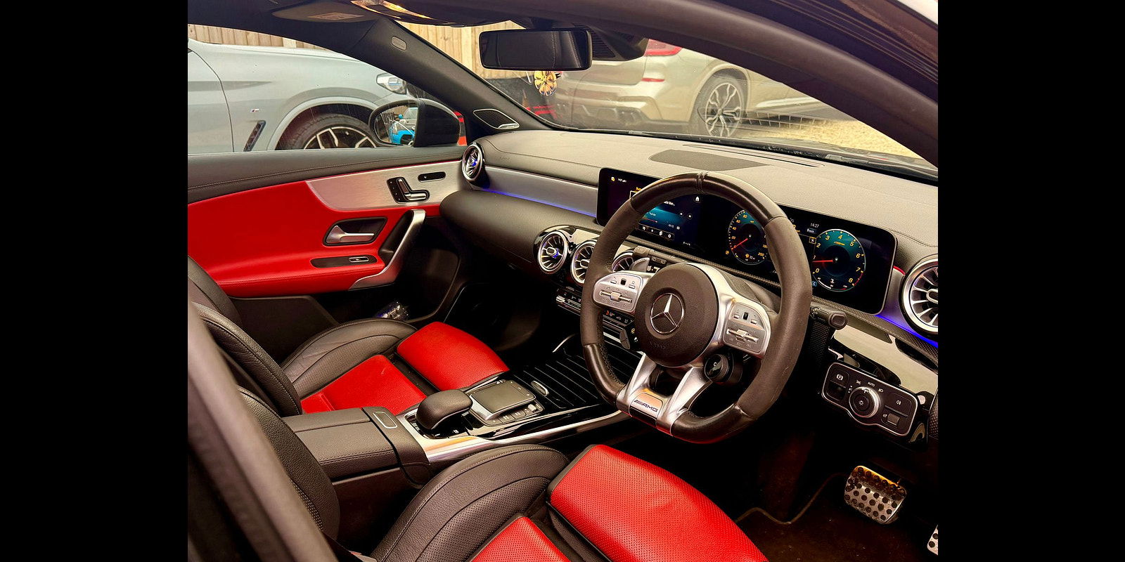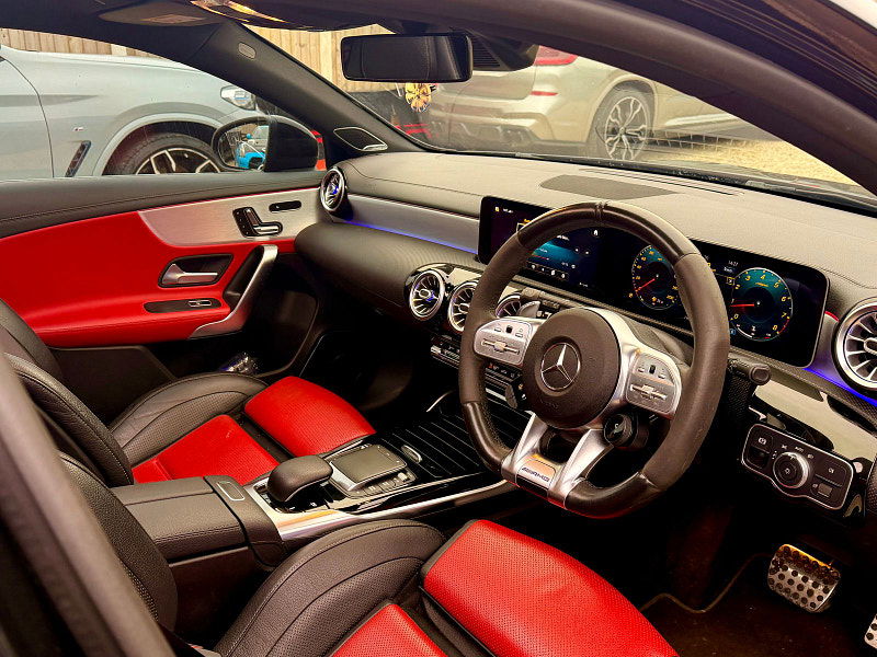 Beneath the bonnet, the impressive 2.0-litre turbocharged engine delivers an exhilarating 421 PS, catapulting you from 0 to 62 mph in just 3.9 seconds. The 8G-DCT automatic transmission paired with AMG’s 4MATIC+ all-wheel drive system offers exceptional traction and agility, whether on winding country roads or urban environments. The AMG Ride Control suspension ensures an optimal balance between comfort and agility, making every drive both thrilling and refined.