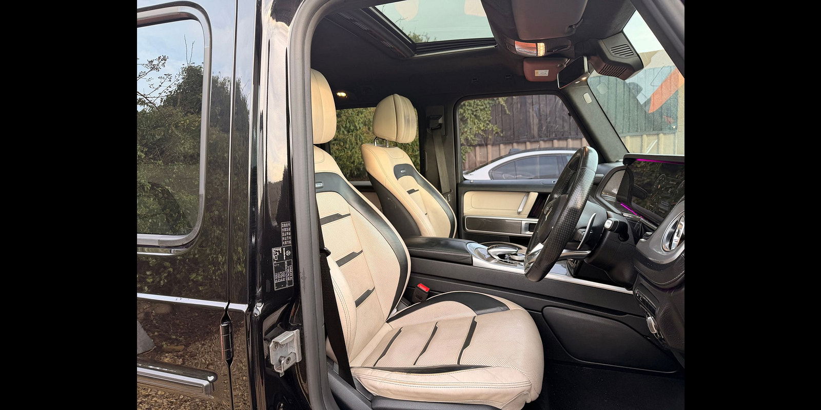 The stunning black finish of the Mercedes-Benz G-Class AMG G 63 exudes an aura of confidence and sophistication. Its iconic boxy silhouette is enhanced by aggressive AMG styling elements and signature LED headlights that effortlessly illuminate the road ahead. This SUV stands tall on sporty 22-inch alloy wheels, accentuating its commanding presence, while the robust skid plates and chrome detailing underline its rugged capabilities. Built to turn heads, the G-Class is a harmonious blend of luxury and off-road prowess, perfect for both urban and country excursions.