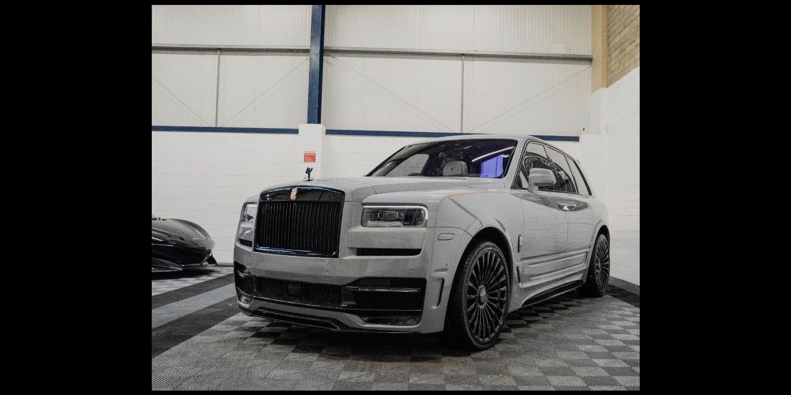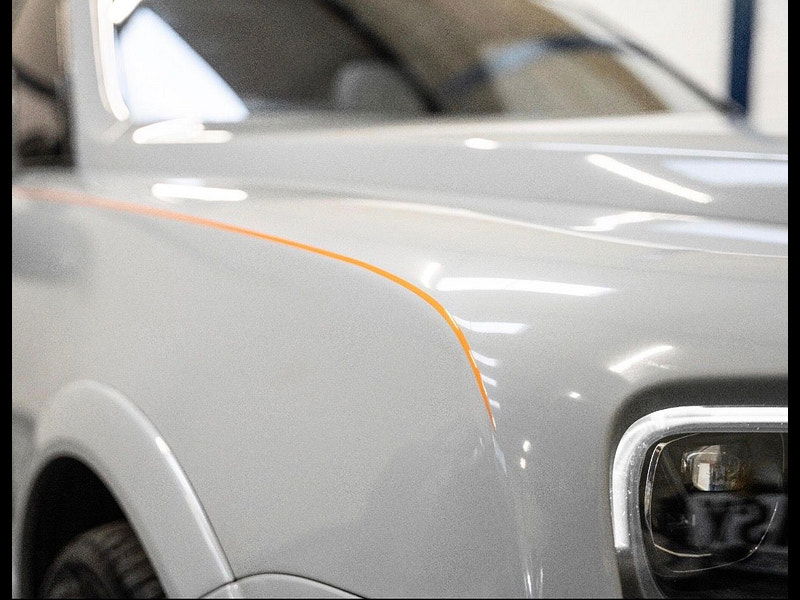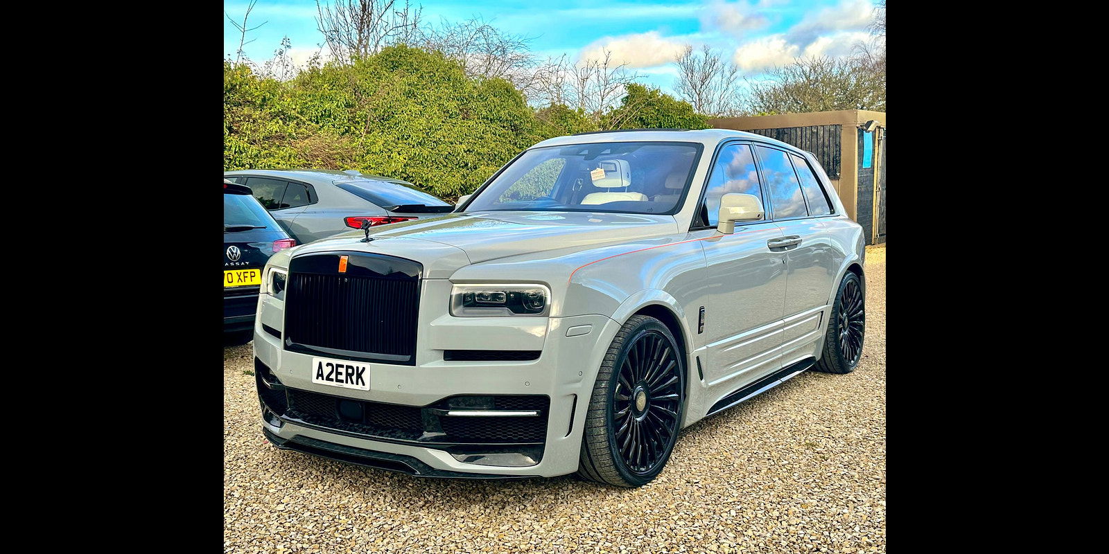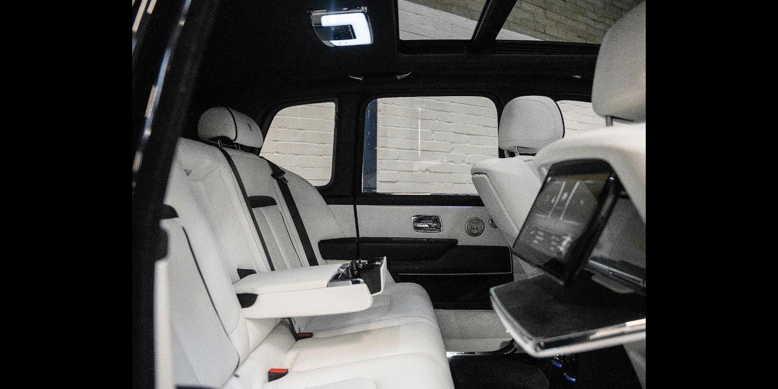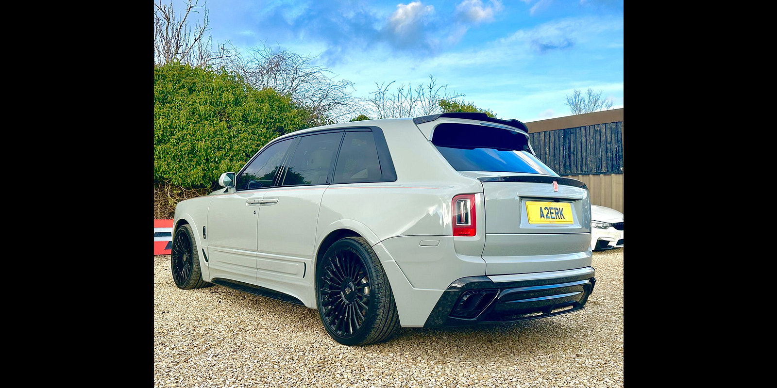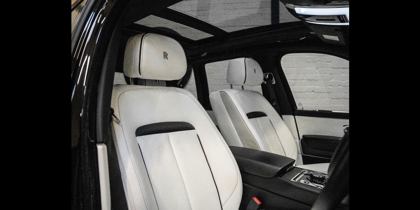 Finished in Black Diamond Metallic with Arctic White Leather, the exterior is currently wrapped in a high gloss Nardo Grey film that can be easily removed if preferred. The vehicle is presented with a high Rolls-Royce factory specification that includes Panoramic Glass Roof + Head up display + RR Bespoke Audio + Rear entertainment theatre package + Driver Assistance Systems inc active cruise control + and the launch specification Cullinan Pack