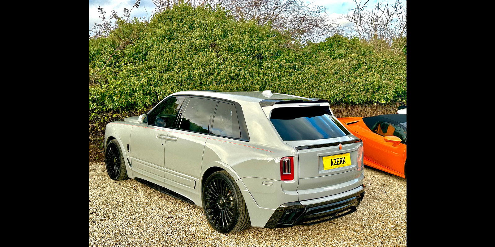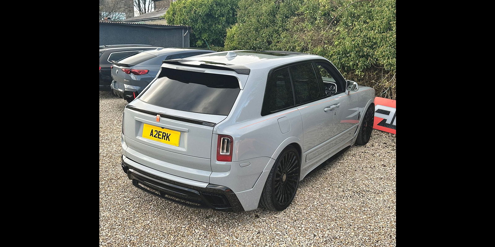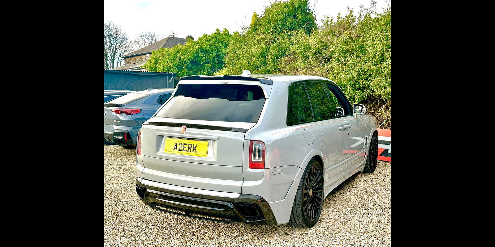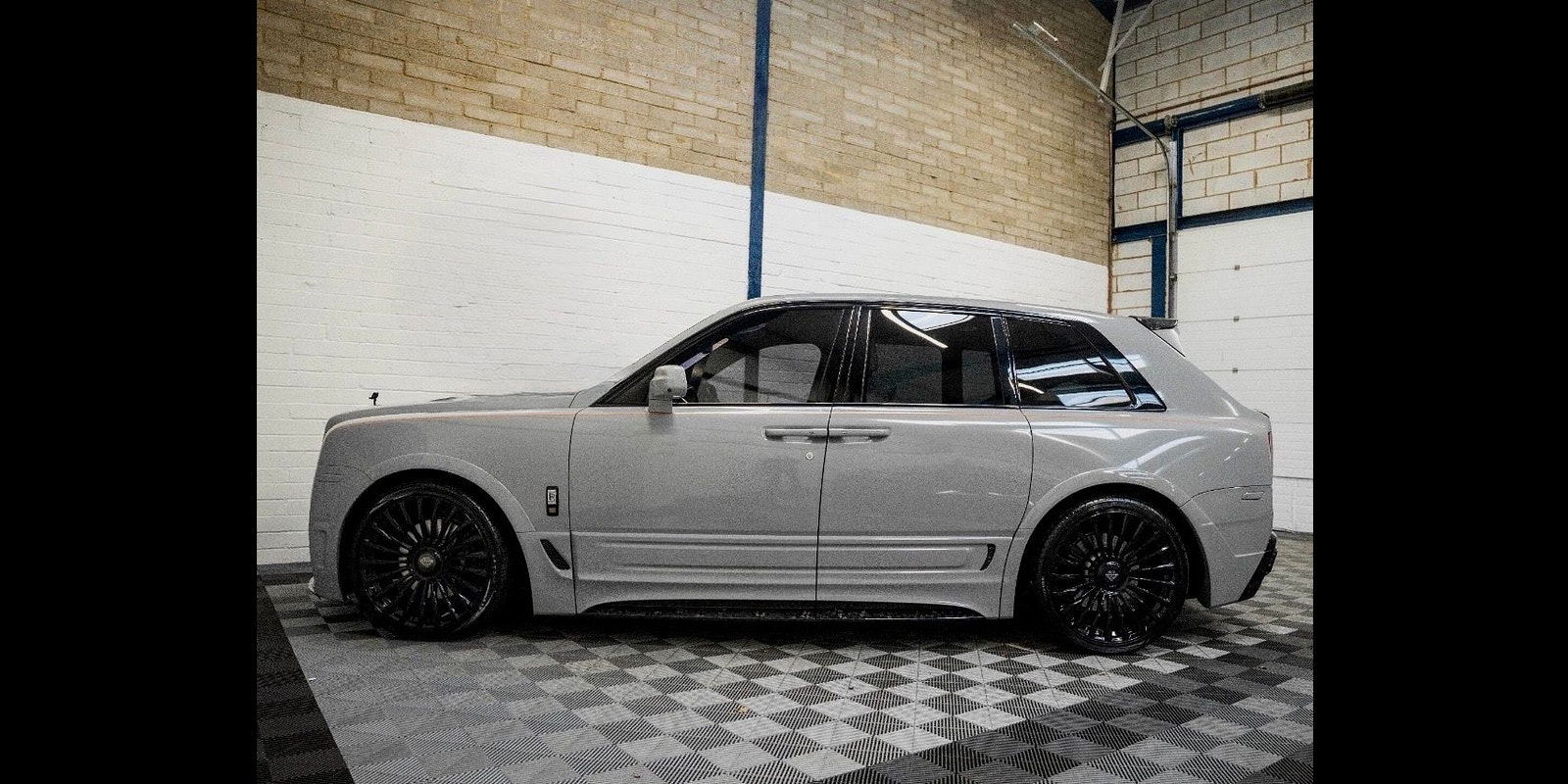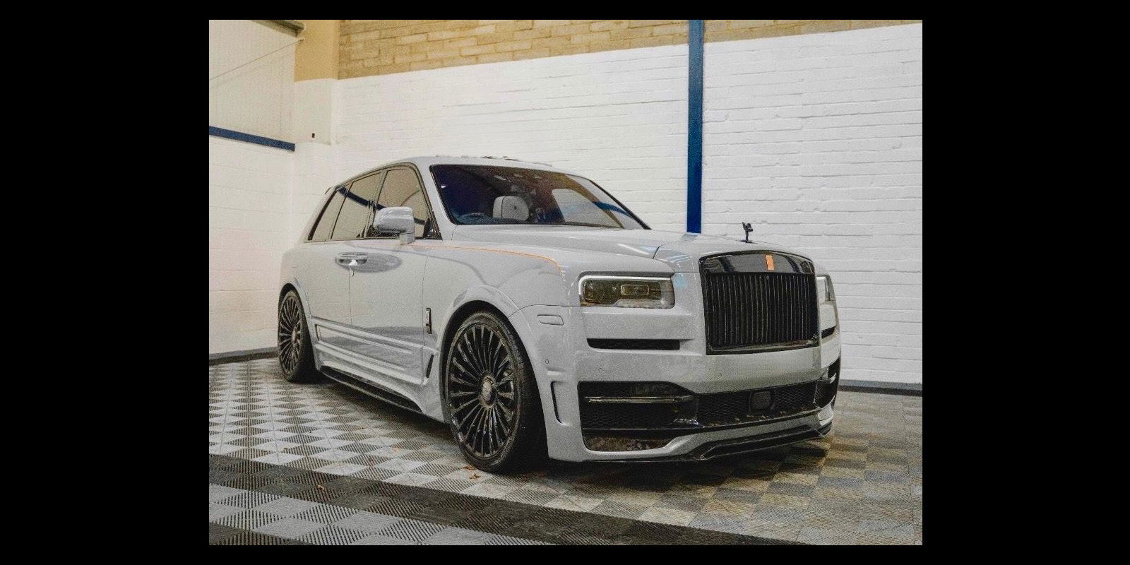 Finished in Black Diamond Metallic with Arctic White Leather, the exterior is currently wrapped in a high gloss Nardo Grey film that can be easily removed if preferred. The vehicle is presented with a high Rolls-Royce factory specification that includes Panoramic Glass Roof + Head up display + RR Bespoke Audio + Rear entertainment theatre package + Driver Assistance Systems inc active cruise control + and the launch specification Cullinan Pack