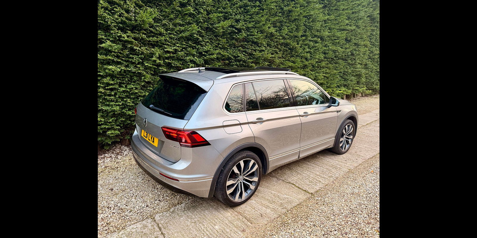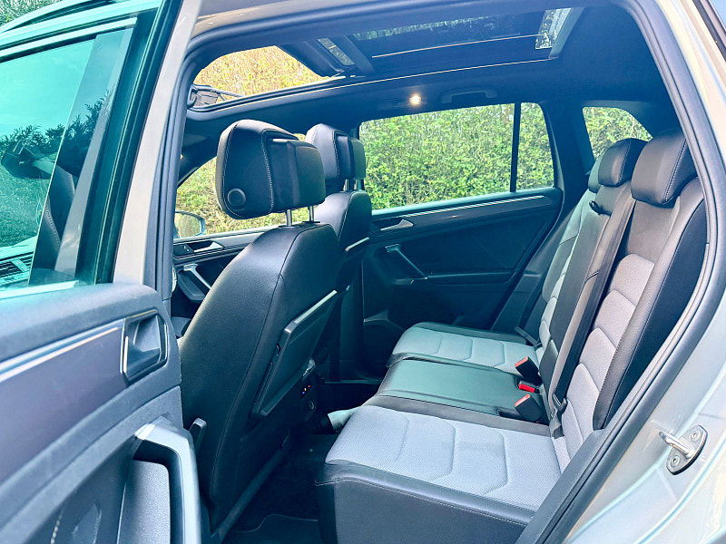Introducing the stunning Volkswagen Tiguan R-Line, a standout in Silver that effortlessly combines elegance with rugged capability. Its dynamic, aerodynamic lines and bold stance make a striking impression on any road. The R-Line aesthetic includes sporty body enhancements such as unique bumpers, side skirts, and 19-inch alloy wheels that enhance its commanding presence. The striking LED headlights offer superior visibility, while the panoramic sunroof invites natural light into the cabin, creating an airy atmosphere.